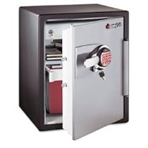 Sentry OA5848 sticks up to 1850-Degree Farenheit; water-resistant; UL classified two-hour fire protection; and UL classified 30-Feet drop test Lock Type: Tubular Key; Electronic; Material(s): Steel; Outer Width: 18 19/32-Inch Outer Depth: 19 5/16-Inch LCD electronic lock system with backlit keypad, programmable PIN access and tubular key lock Seven live-locking bolts ...